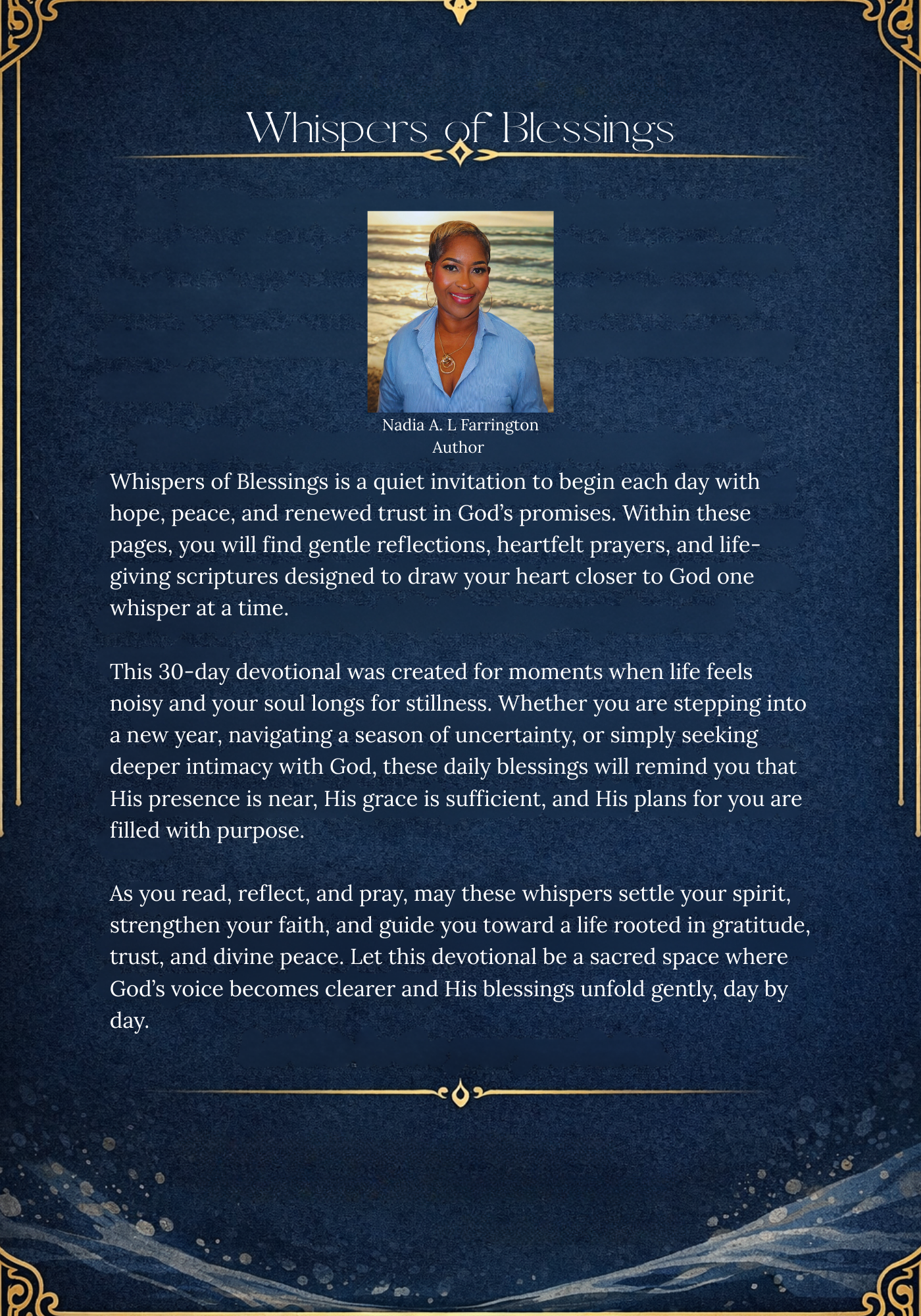 Whispers of Blessings: A 30-Day Devotional for a Grace-Filled New Year is a sacred invitation to begin each day with hope, peace, and renewed faith.